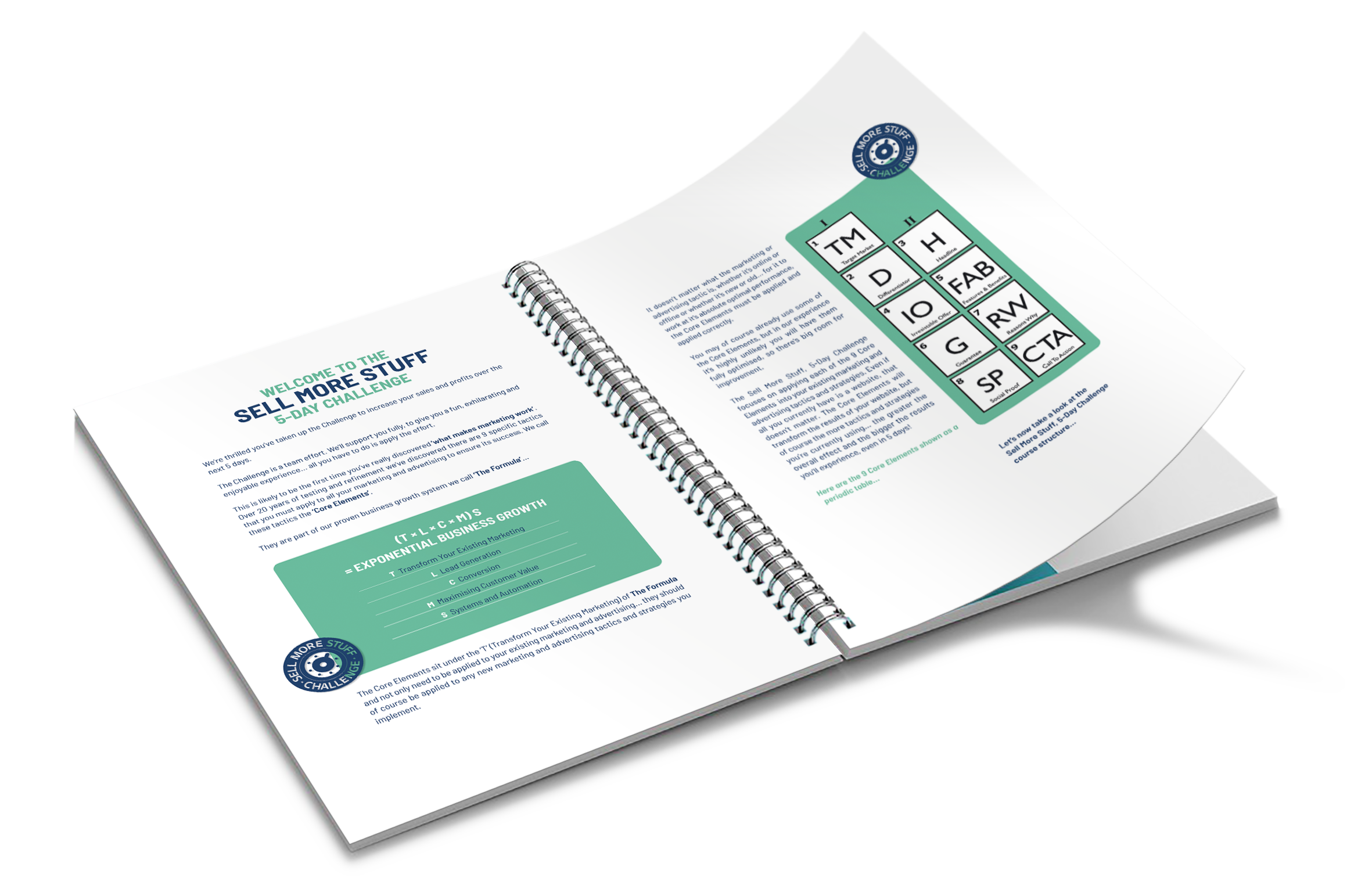 As soon as you enrol into the Challenge you'll receive the SELL MORE STUFF CHALLENGE 'Workbook'